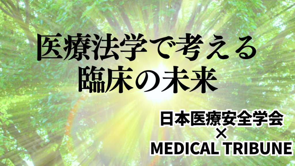 日本医療安全学会では、M3.comにて医療安全対談シリーズ「これからの医療安全」を、MEDICAL TRIBUNEにて「医療法学で考える臨床の未来」を連載しております。ぜひご覧ください。(画像をクリックいただきますと詳細ページに移行いたします)